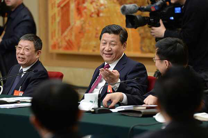3月4日,习近平参加了少数民族界委员联组会讨论。3月5日,人大会议开幕后,习近平先后参加了上海、广东、贵州、安徽、解放军五个代表团的审议,分别涉及制度创新、改革开放、环保生态、农村改革、军队建设等关键词。
